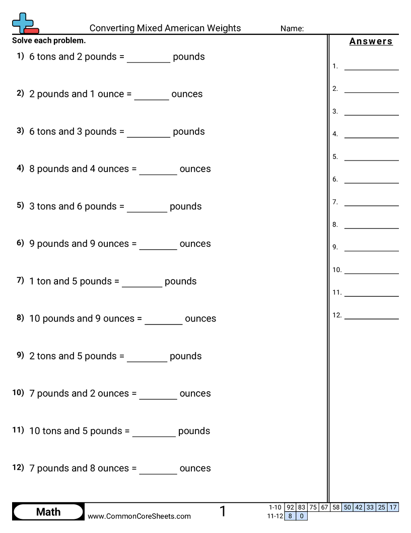 Converting Mixed American Weights Worksheet Download